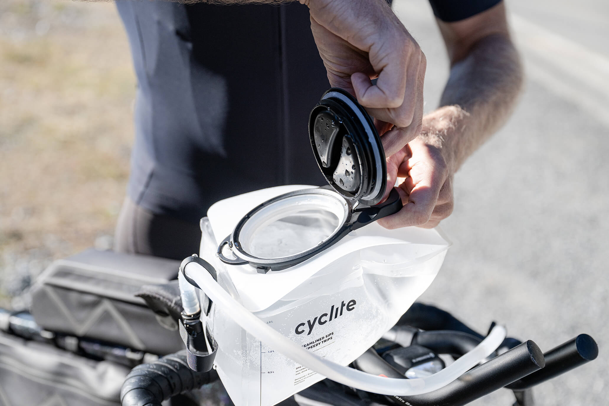 Our solution for effortless and aerodynamic hydration during rides, directly at the handlebars.