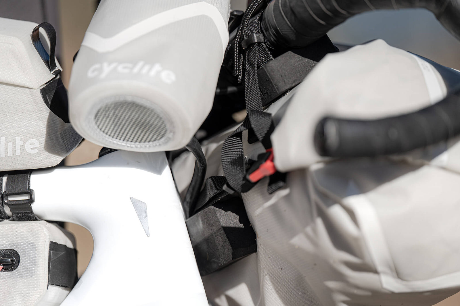 HRB DISTANCE KEEPER est une entretoise adhésive en mousse pour la HANDLE BAR ROLL BAG, conçue pour optimiser le passage des gaines de dérailleur et de frein, réduire les frottements et protéger efficacement le tube de direction.